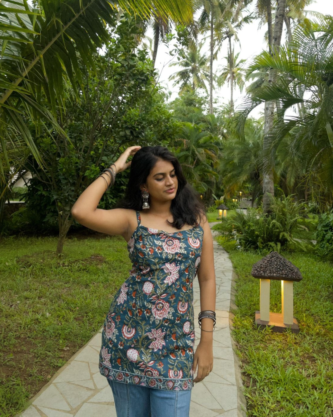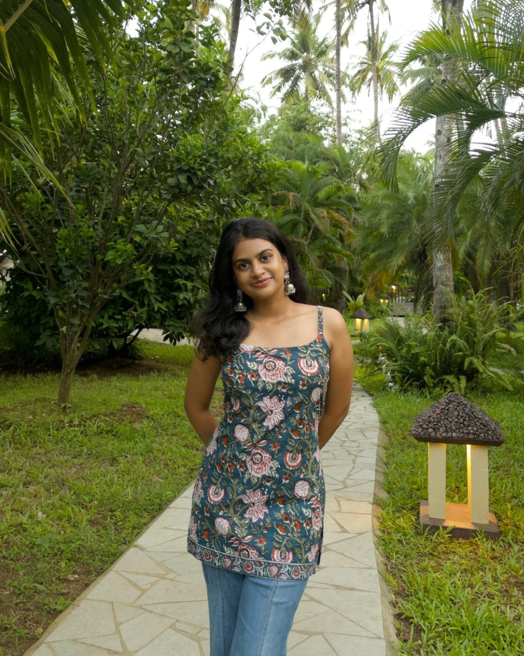 This strappy kurti is like a walk through a sunlit garden — delicate florals, breezy blues, and timeless charm. Bagh-E-Noor is made for the girl who lights up a room without even trying. Pair it with oxidized jhumkas and a soft smile — just like she carries her dreams, gently but powerfully.
