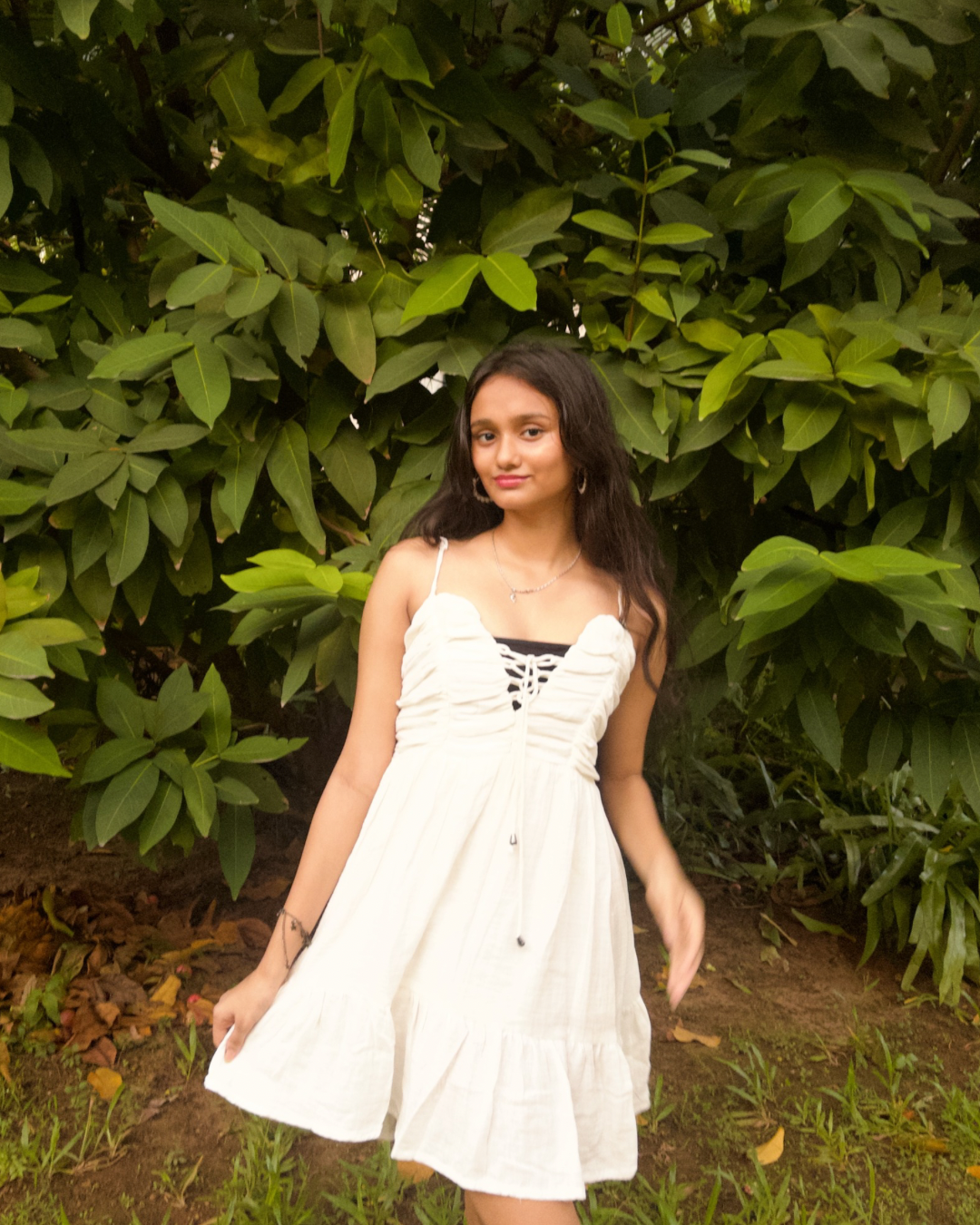 This breezy white dress is your soft spotlight on a dull day. With delicate ruching, flirty tie-up details, and a flowy silhouette, Noor is that effortlessly pretty outfit you wear when you want to feel light, fresh, and a little magical. Perfect for park strolls, beach brunches, or just spinning around like you’re in a Bollywood dream sequence. 🌸