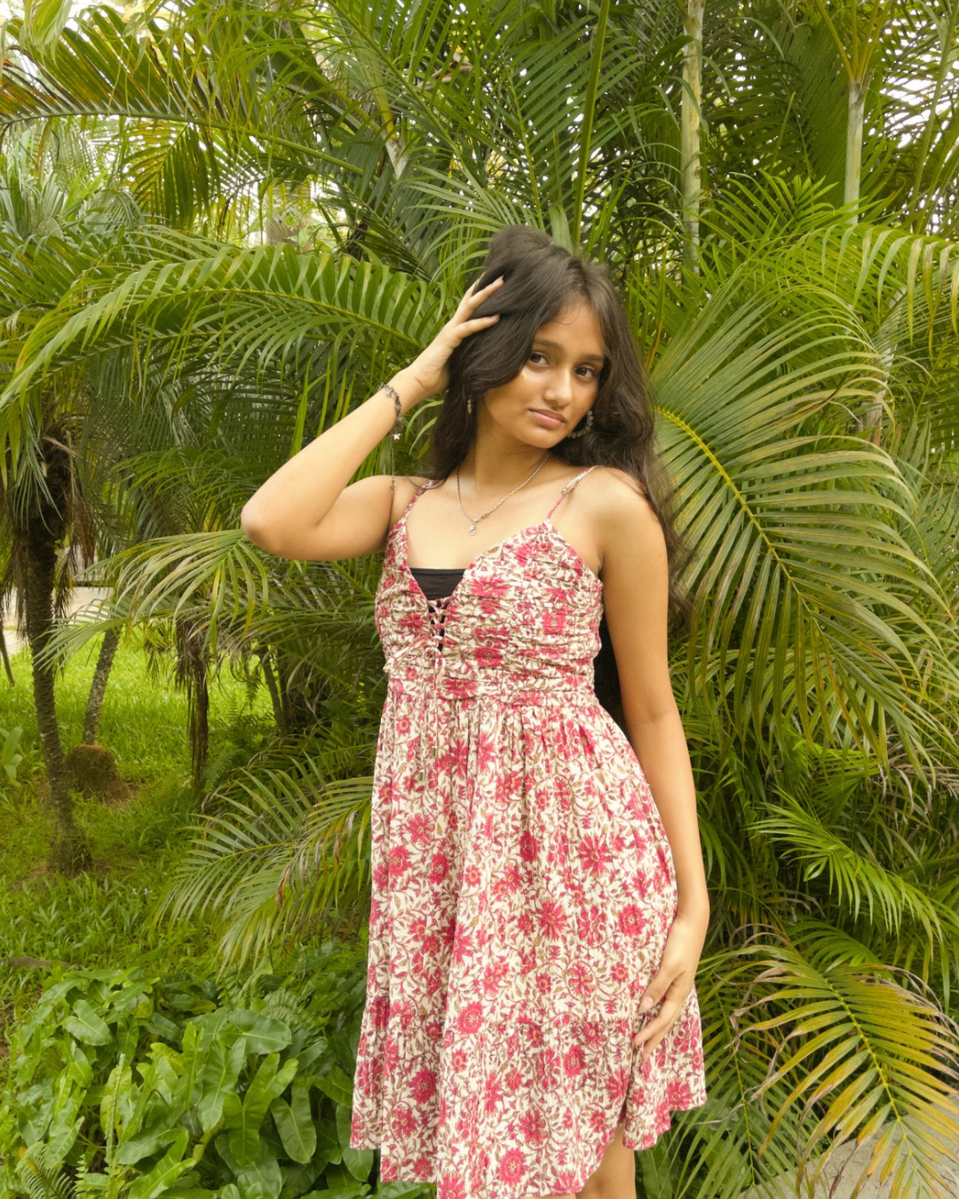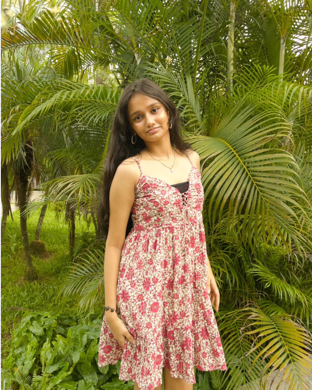 Delicate, dreamy, and desi to the core — PhoolSi is like wearing a soft bloom. With tiny pink florals scattered over a cream canvas, it’s giving major “main character in a garden” energy. The gathered bust detail adds shape, while the adjustable straps make it easy to wear your way. It’s free size and fits up to a size large, making it your go-to for cute café dates, casual chill scenes, or just feeling pretty on a random Tuesday.